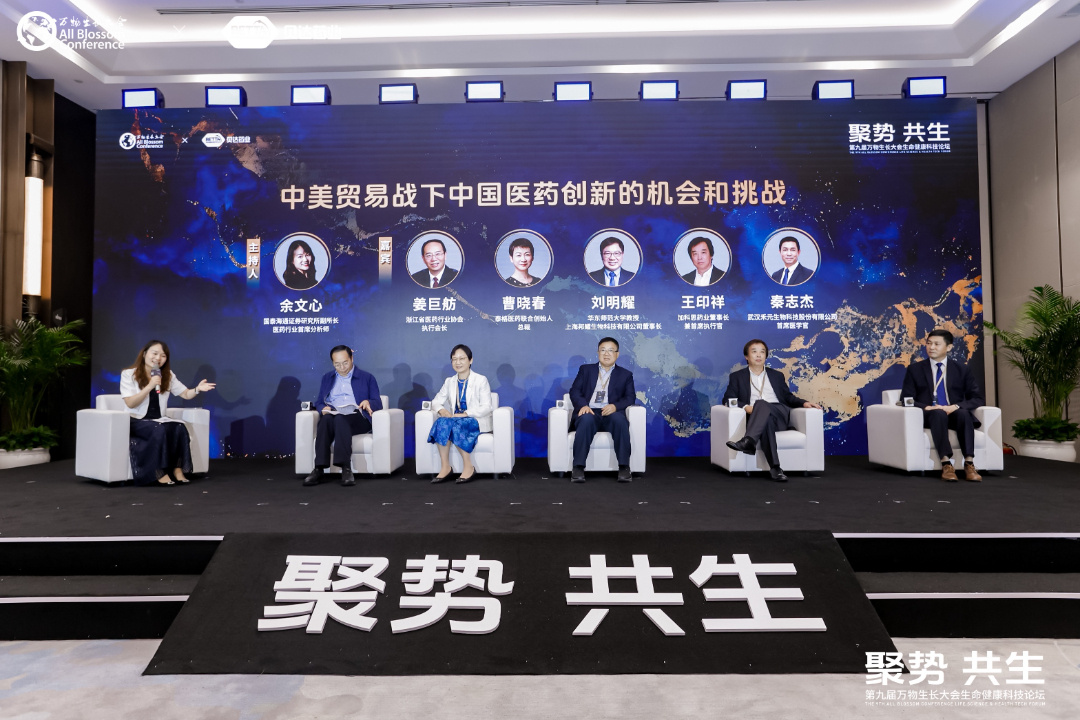 隨后,圓桌主題論壇舉行。浙江省醫(yī)藥行業(yè)協(xié)會(huì)執(zhí)行會(huì)長(zhǎng)姜巨舫,泰格醫(yī)藥聯(lián)合創(chuàng)始人、總裁曹曉春,華東師范大學(xué)教授、邦耀生物董事長(zhǎng)劉明耀,加科思藥業(yè)董事長(zhǎng)兼首席執(zhí)行官王印祥,禾元生物首席醫(yī)學(xué)官秦志杰,圍繞“中美貿(mào)易戰(zhàn)下中國(guó)醫(yī)藥創(chuàng)新的機(jī)會(huì)和挑戰(zhàn)”主題,深入探討了國(guó)際貿(mào)易環(huán)境變化對(duì)國(guó)內(nèi)創(chuàng)新藥企業(yè)的影響。本環(huán)節(jié)由國(guó)泰海通證券研究所副所長(zhǎng)、醫(yī)藥行業(yè)首席分析師余文心主持。